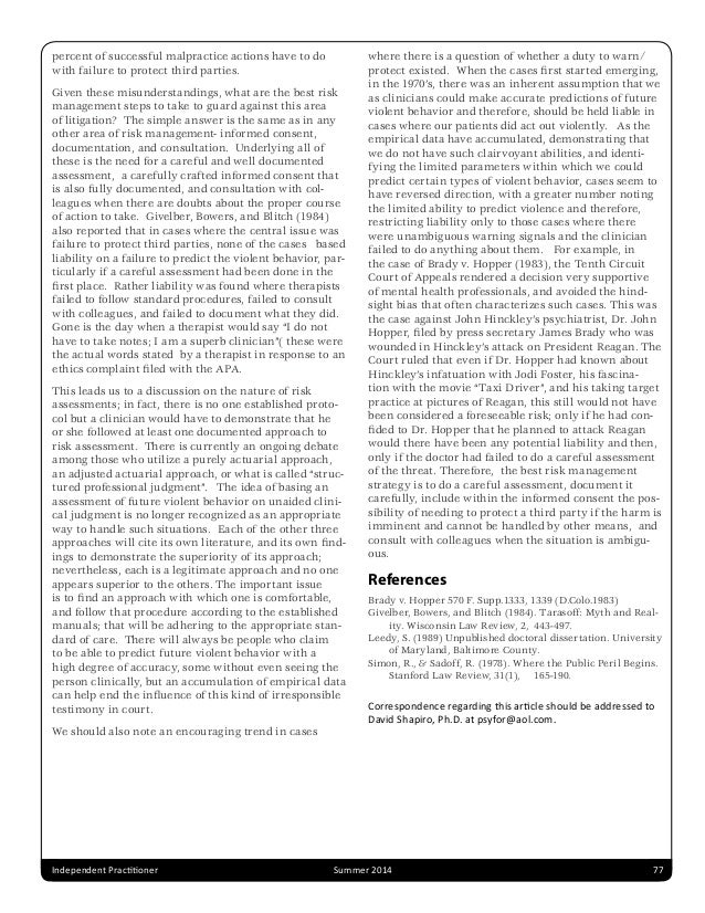 Health Service Psychology: Preparing Competent Practitioners exist in American Psychological Association (APA) policy (APA, 1996, malpractice risks, safety, and so forth. HSPs also must understand the wide variety of national and ... Get Document